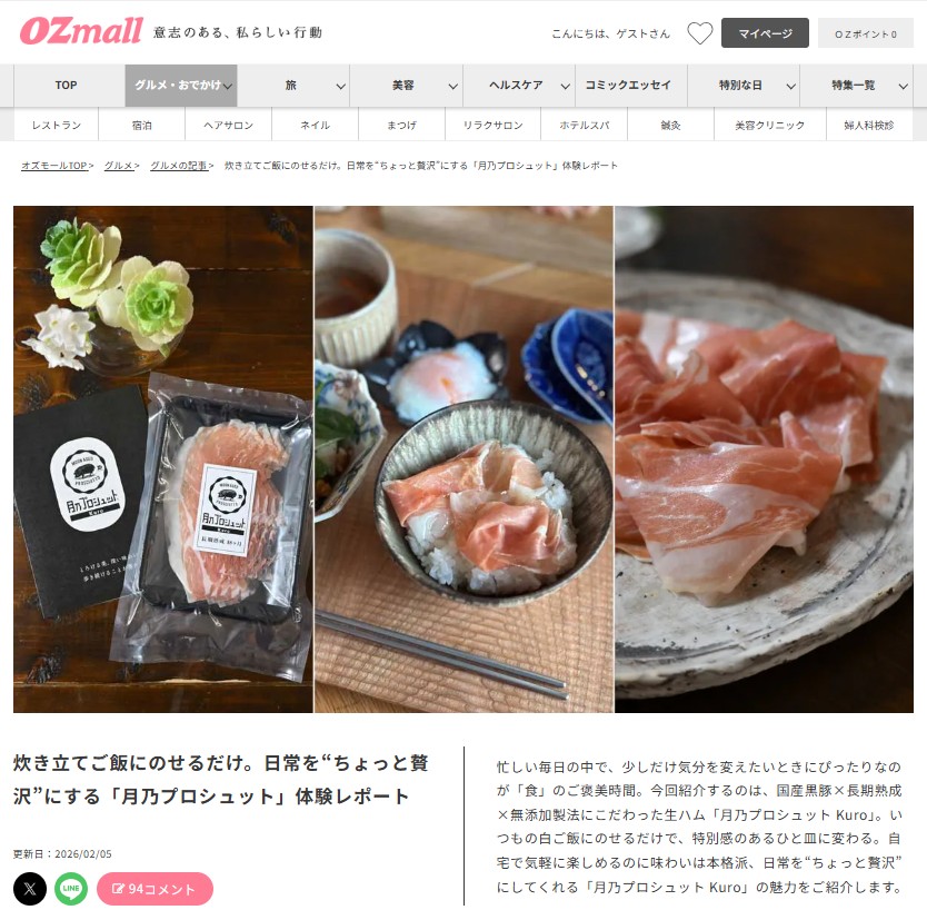 OZmall にて当社商品 「月乃プロシュット Kuro」 の魅力を紹介した記事が公開されました。